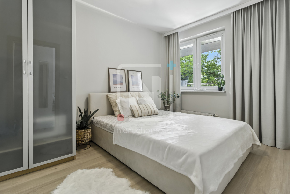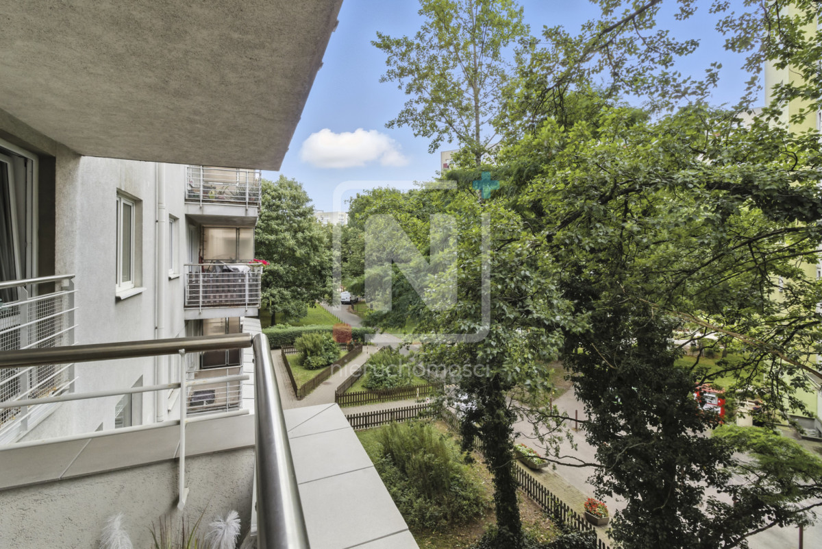 Mieszkanie znajduje się w zielonej, spokojnej okolicy, z pięknym widokiem na drzewa. Duże okna zapewniają dużo naturalnego światła i prywatności – nie ma bezpośredniego sąsiada za oknem.