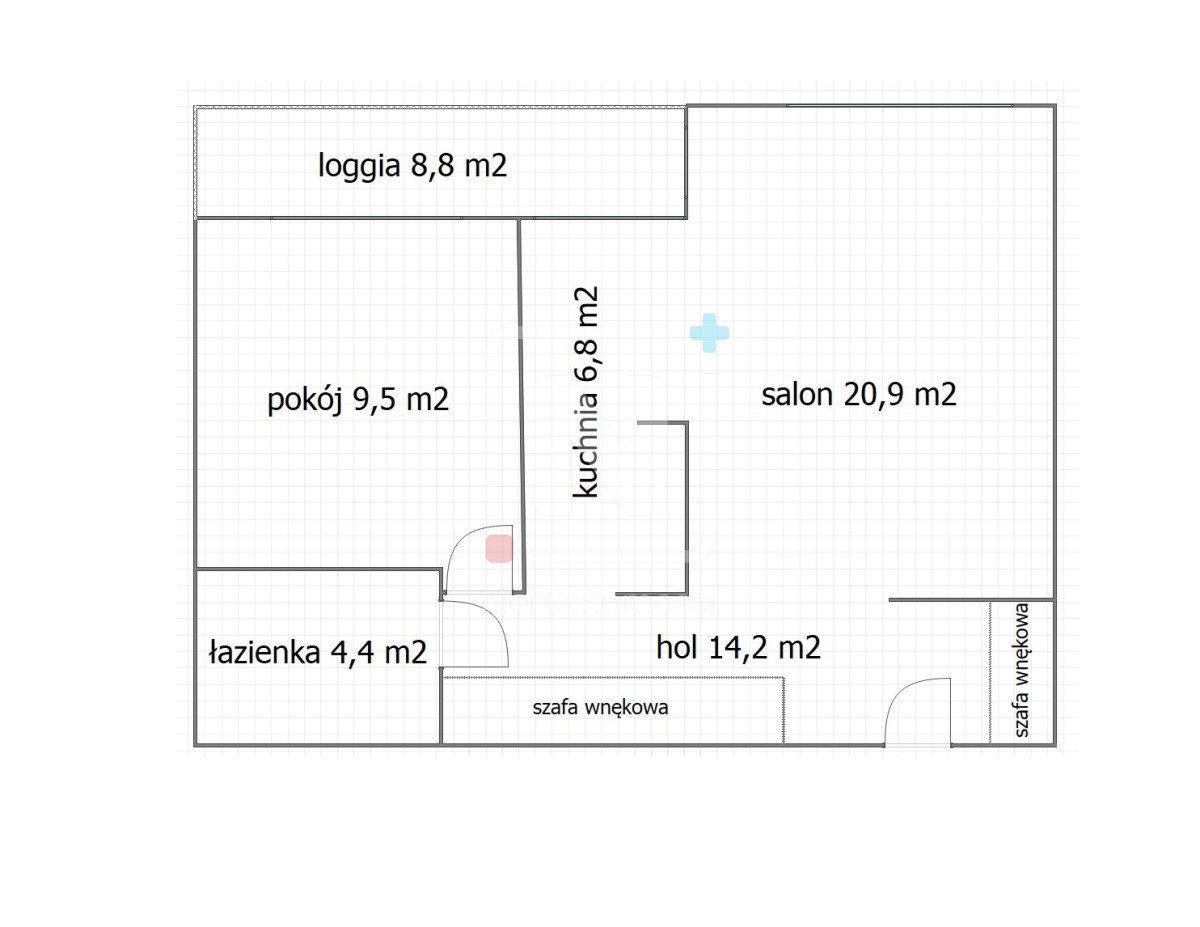 Układ: Salon z aneksem kuchennym + sypialnia + łazienka + hol