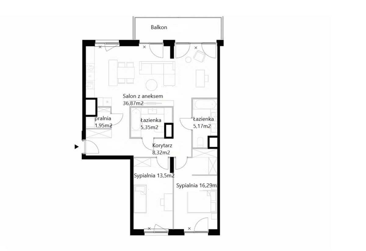 – duży salon z aneksem (37m2)