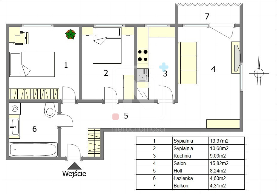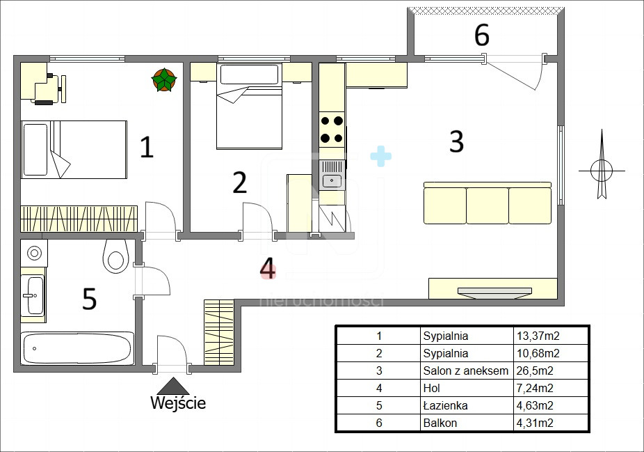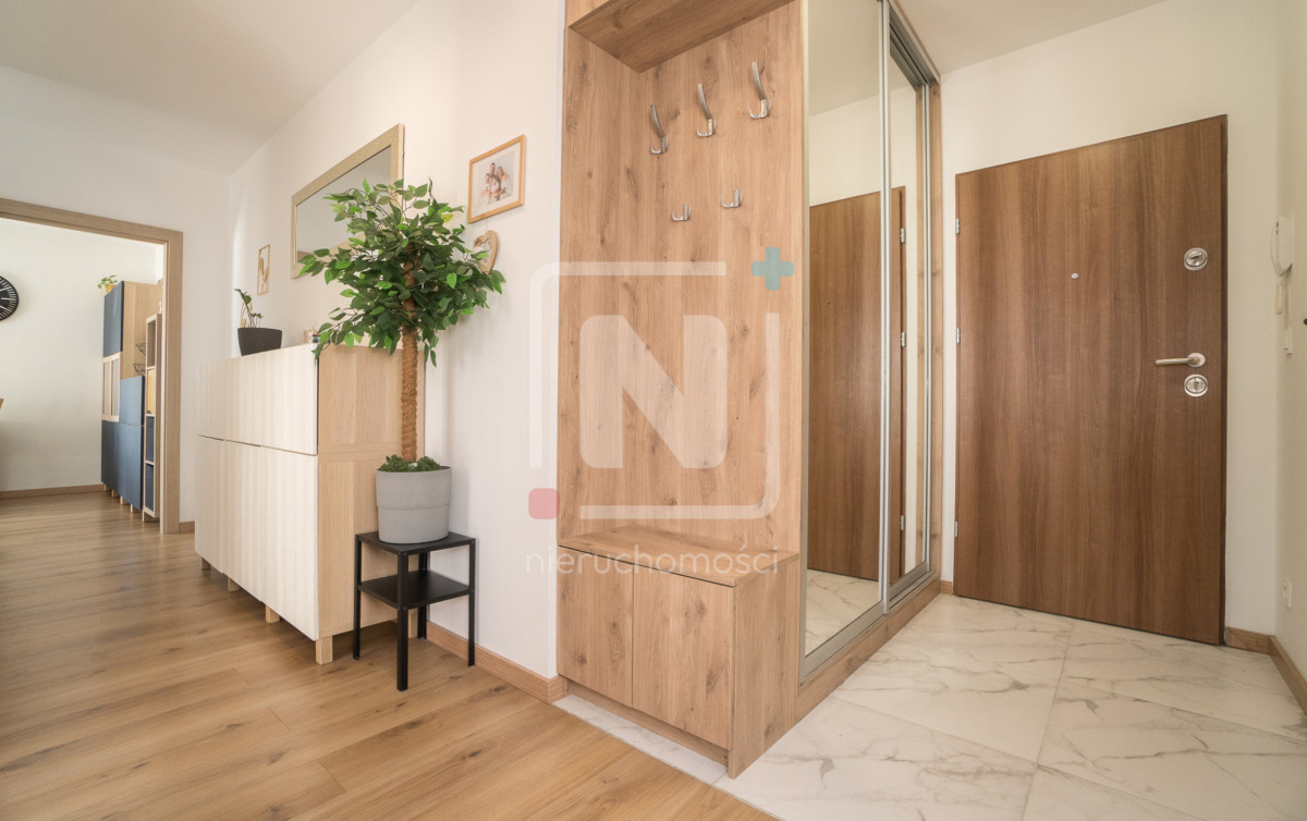 Mieszkanie oferuje funkcjonalny układ pomieszczeń oraz potencjał aranżacyjny — istnieje możliwość otwarcia kuchni na salon, co pozwala stworzyć nowoczesną, przestronną strefę dzienną dopasowaną do własnych potrzeb.