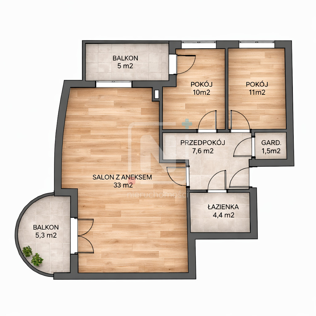 * dwóch balkonów, które stanowią dodatkową przestrzeń do wypoczynku.