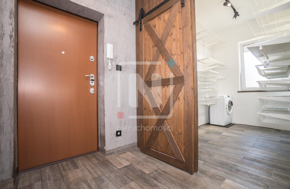♦ Układ: 3 pokoje – przestronny salon w stylu industrialnym z aneksem kuchennym, dwie sypialnie, funkcjonalna łazienka, garderoba