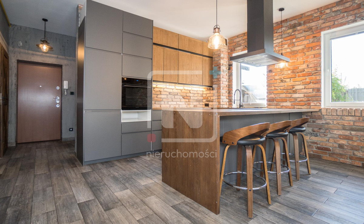 ♦ Layout: 3 rooms – spacious industrial-style living room with kitchenette, two bedrooms, functional bathroom, walk-in closet