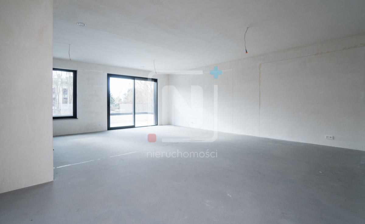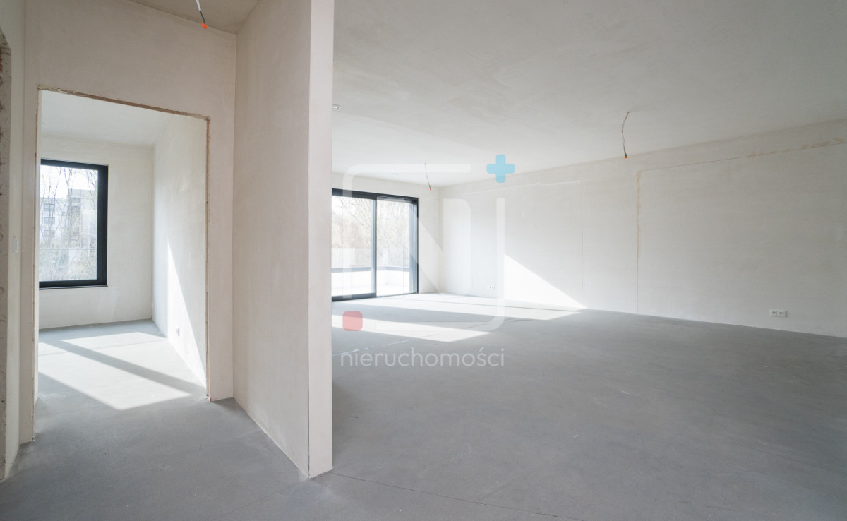 – Salon z aneksem kuchennym –  ponad 50 m²! z zachodnią ekspozycją okien i wyjściem na taras z widokiem na zieleń