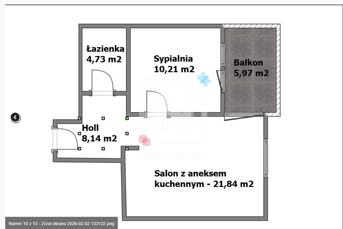 – sypialnia – 10,21 m²