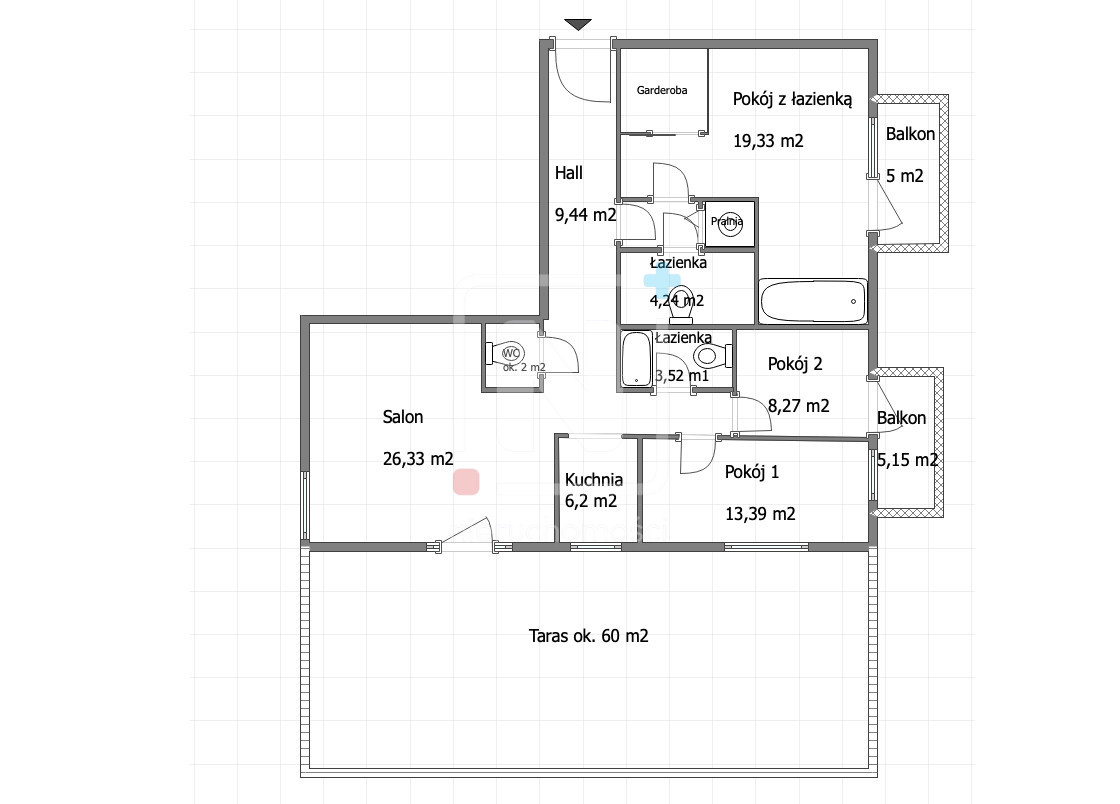 • Taras 60m2 z widokiem na miasto, a także 2 balkony