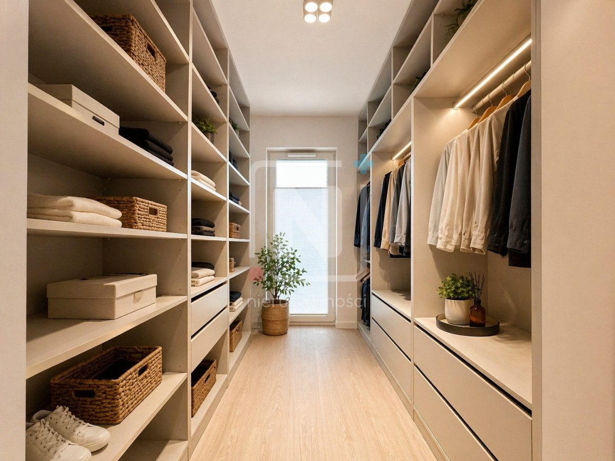 Elastyczne pomieszczenie – obecnie garderoba, z możliwością aranżacji na pokój dziecięcy lub biuro.